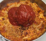 Ziti pasta tossed with fresh ricotta mozzarella, romano cheese and red sauce topped with a homemade meatball.