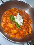 Potato gnocchi with red sauce, fresh mozzarella, basil and parmigiano cheese.